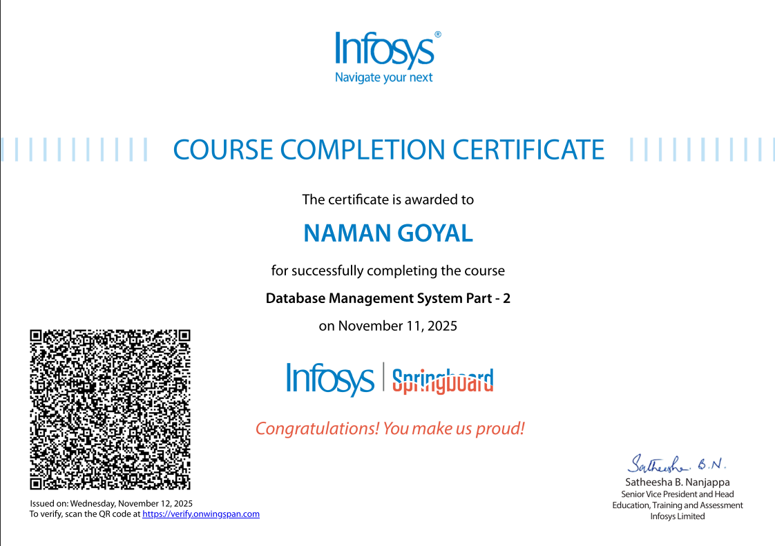 Completed full-stack development using the MERN stack and began building real-world projects like a Kirana Store Management system. Currently exploring machine learning, AI integrations, and MCP-based workflows to build intelligent, scalable systems.